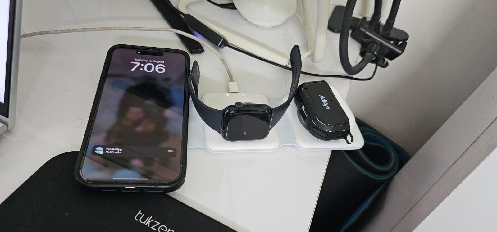 I am extremely satisfied with this 3‑in‑1 wireless charger. It has made my daily charging routine so much easier and more organized. Instead of dealing with different charging cables for my phone, smartwatch, and earpods, now I just have one sleek station that keeps everything in one place. The design is modern, compact, and looks stylish whether kept on my work desk or bedside table.The charging performance is good, stable, and efficient. My phone charges without overheating, my watch sits securely on its dock, and my earpods fit perfectly in their space. It feels well thought‑out and user‑friendly.Another thing I love is how clutter‑free it makes my space. My workspace looks more tidy and organized, and I no longer have to carry multiple chargers while traveling. It feels like a complete all‑in‑one solution for people who rely on multiple gadgets every day.Overall, this wireless charger is not just a convenient accessory but a genuine lifestyle upgrade. It’s reliable, efficient, and stylish—I would definitely recommend it to anyone looking for a smart way to charge their devices.